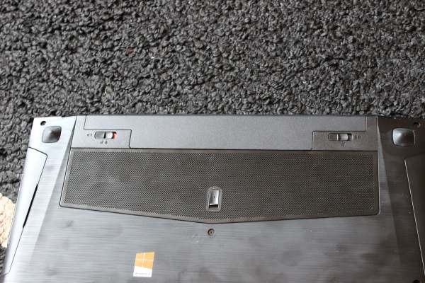 On the left edge, you’ll find two USB 3.0 ports, HDMI video output, RJ-45 Ethernet Pot, a VGA connector for older monitors, another for cooling vent, the power connector, and the OneKey rescue system button. As for the front, there’s not a whole lot going on there, we have the 6 in one multi-card reader in front, and a couple of indicator lights on the far left corner. One more unique design feature the Y500 has, is modular ultrabay, a laptop feature that hasn’t been popular since the mid-2000s. The ultrabay allows you to swap in different components like the Lenovo’s a removable hard drive (up to 750GB, $190), a DVD burner ($70), SLI graphics ($230, included in above price), or an extra cooling fan ($30). Our unit came with a second 650M GPU, the flexibility options that comes with the Y500 is appreciated, as it allows you to transform your gaming laptop into a workstation. Finally for the design features, underneath the Y500 is a monster air vent that keeps your laptop internals running smoothly while you game away.