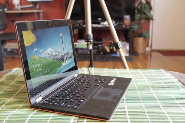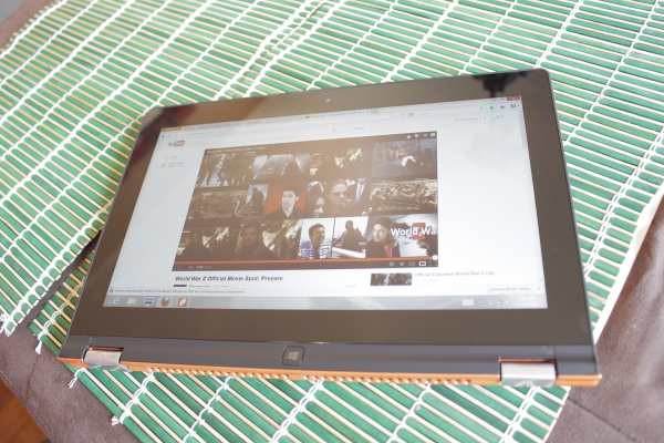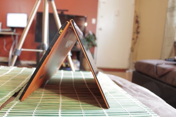 The Yoga 11s literally bends over backwards with the help of the 360-degree hinge, allowing you to fold the screen all the way so you can use the device as a tablet. The keyboard and touchpad are automatically enabled and disabled upon reaching 190°