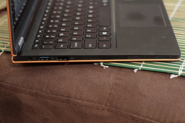 The left side of the Yoga 11s houses a Headphone/Mic Jack, USB 3.0 port, HDMI and HDMI while a USB 2.0 port, SD Card Reader and AC power jack line the right side. A rotation lock button can also be found on the right side.
