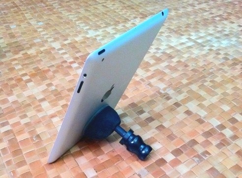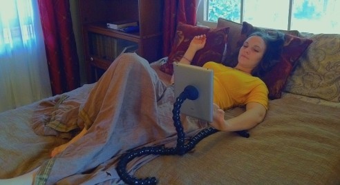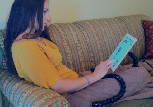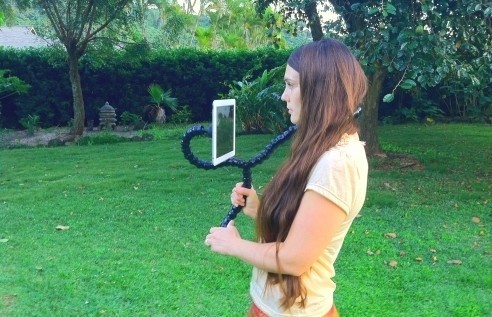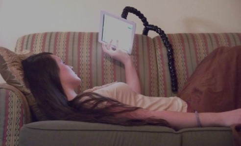 I just came across this product on Kickstarter, and liked the concept. I do a lot of work at home , and I often get cramps from holding my mobile devices in the same position, so I totally bonded with this product. I literally have been in search for a stand I can use in bed, but all my search queries bring back a bunch of contraptions that can hurt you. This (Tribunga) seems like the perfect solution for me. Tribunga is a triflex bi-pod specifically designed for portable media devices, it uses a vacuum and micro suction combined to hold your device in place. I totally like the flexibility of the product, and it’s multifunctional ability for everyday use. The Tribunga stand can works as a camera stabilizer on ipads too, see pictures below.