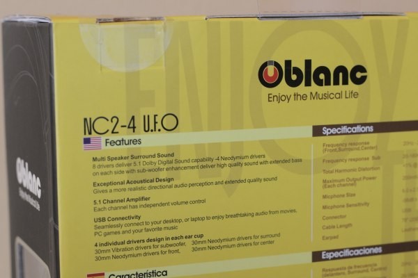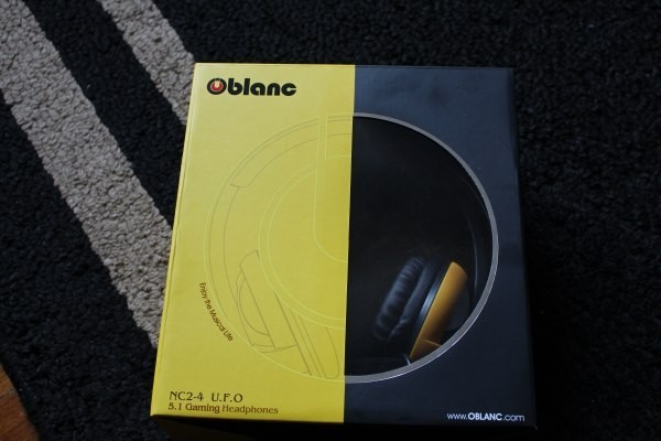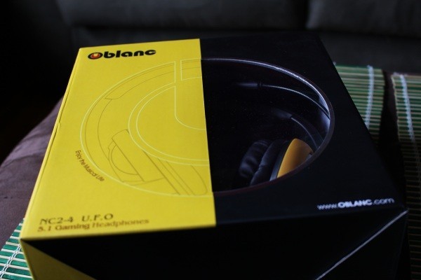 The Oblanc 5.1 NC2-4 UFO headphones comes in a simple yellow and black packaging, a small window on the front and side to give you a partial view of the headset. The box contains the user manual, Oblanc Warranty Card, and a Rubber Key Tag.