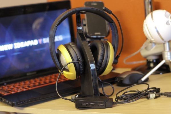 The NC2-4 has a plastic over-the-top adjustable headband, re-enforced with aluminum, making it more sturdy and incredibly light. The over-the-ear-cups that houses it’s 4 individual drivers each, has a comfortable leatherette fabric for immense comfort. It also comes with a flexible boom microphone that provides immense clarity during voice calls, and come with independent controls for “Main Volume, Front, Center, Surround, and Bass level”