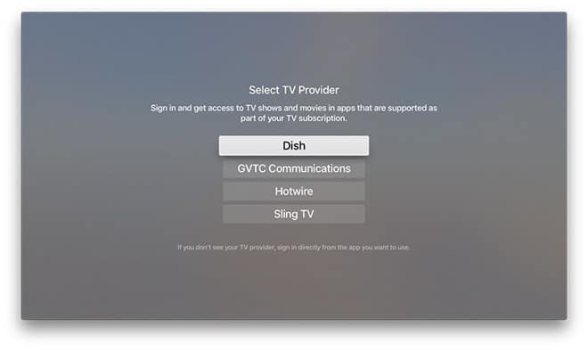 If you are using these builds on both devices then go over to settings, provider, and then you can enter your TV providers information. Apple TV currently supports Dish Network, GTVC Communications, Hotwire and Sling TV services. We can expect more services will be added next year.